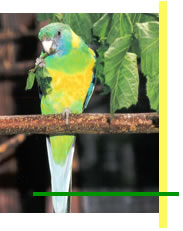 Volieren sind Naturstamm-Nisthöhlen angebracht, es kommt